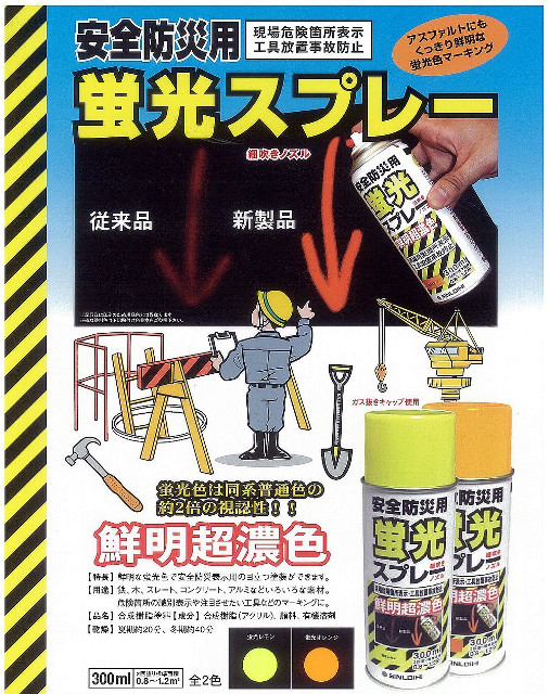 - 鮮明な蛍光色で安全防災表示用の目立つ塗装ができます。