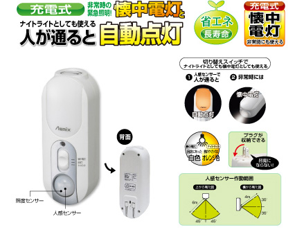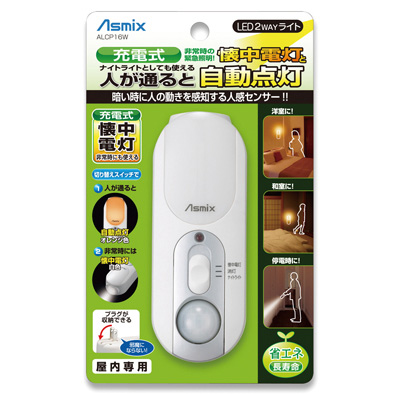 商品名 【訳あり・特価】 ASMIX LED2WAYライト 人感センサー付き ALCP16W <ナイトライト/懐中電灯>