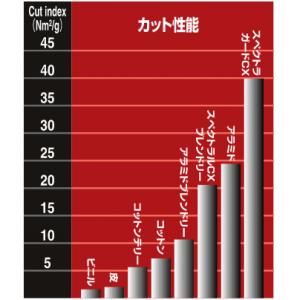 • スペクトラガードCX繊維でできたグローブはアラミド繊維で作られたグローブに比べて2倍抵抗力があります。