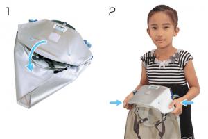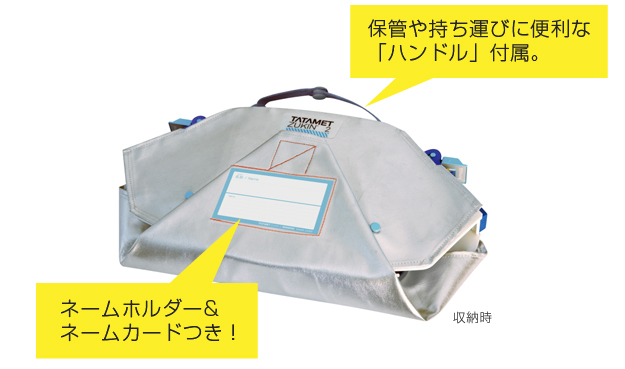 「タタメットズキン2」は、「タタメットズキン」の販売活動の中で頂いた保護者の方や先生方の声を受け、さらに学校備蓄に最適な道具として進化した改良版です。