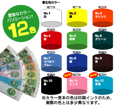 カラー 白・黄・オレンジ・赤・若草・グリーン・コバルトブルー・紺・茶・黒・ピンク・水色