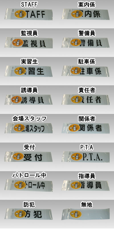 STAFF・案内係・監視員・警備員・実習生・駐車係・誘導員・責任者・会場スタッフ・関係者・受付・P.T.A.・パトロール中・指導員・防犯・無地