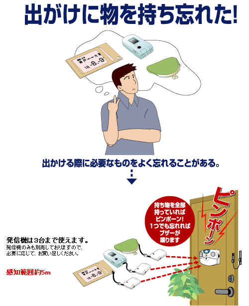 | セット内容 | 受信機、発信機(ストラップ付)各1台、両面テープ |