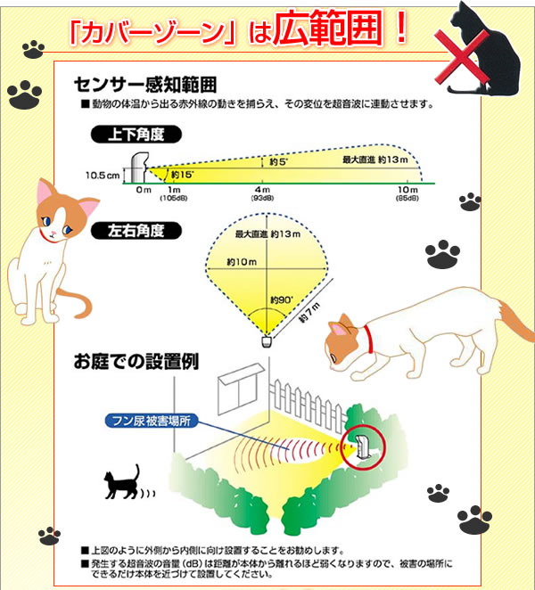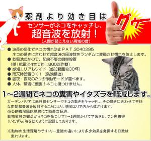 超音波でネコの糞害やイタズラを軽減する商品です。