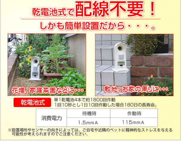 ノラネコの被害でお困りの方は必見です!センサーがネコをキャッチし、超音波を放射!超音波でネコの糞害やイタズラを軽減します!