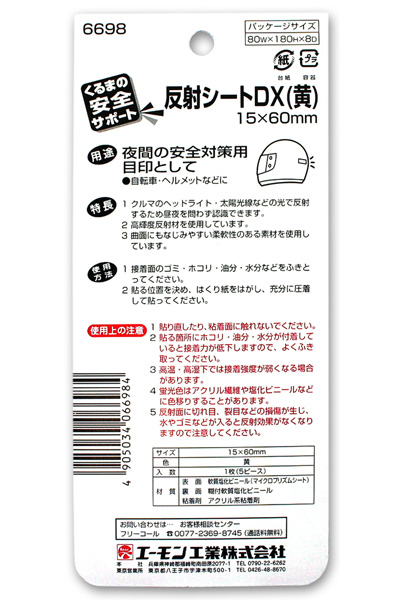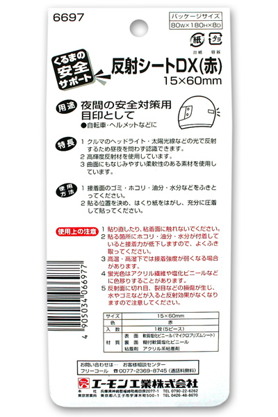 商品名 エーモン 反射シートDX(15×60mm)5ピース 自動車やヘルメット、傘等に張り、夜間の事故防止に