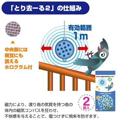 - ◆鳥よけ磁石で迷惑鳥を強力忌避!