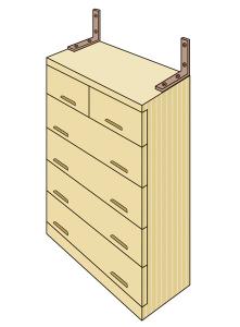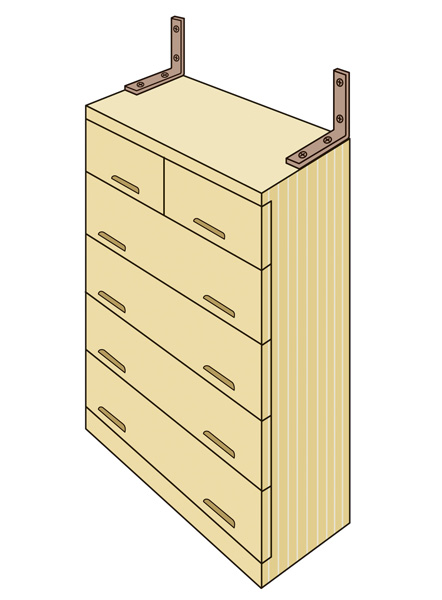 ここは空白です タンスや食器棚などの木製家具をガッチリ壁に固定して転倒を防止します。
