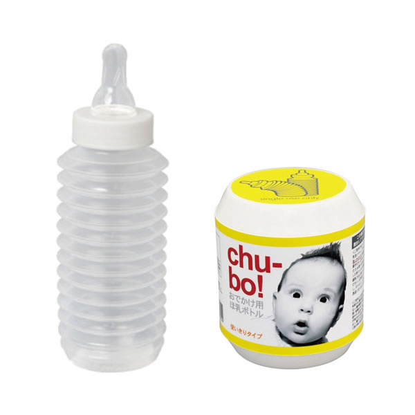 コンパクトに保管、携帯できる伸縮自由なジャバラ式のほ乳ボトルです。