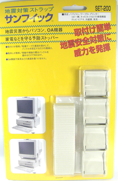 | (1) | 粘着テープの裏面を剥がして、バックルを固定するだけの簡単さ |