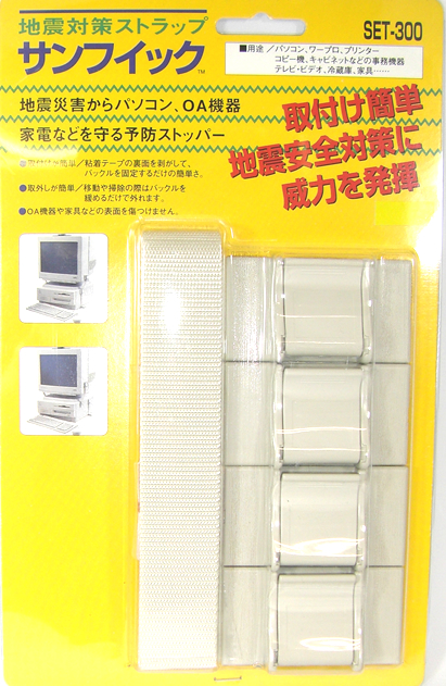 | (1) | 粘着テープの裏面を剥がして、バックルを固定するだけの簡単さ |