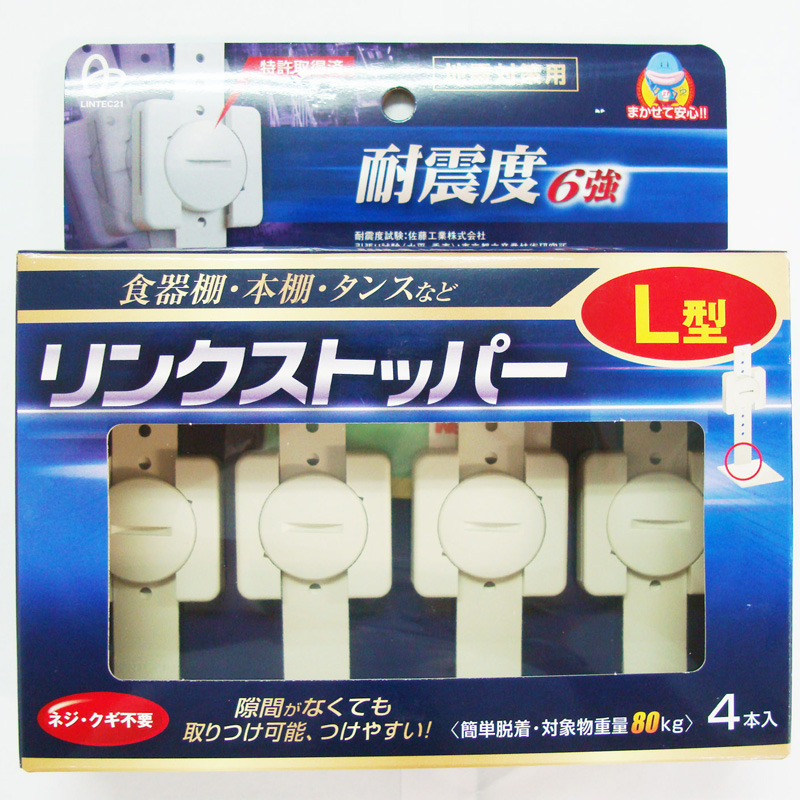 防災グッズパソコン・サーバー・キャビネット転倒防止 リンクストッパーL型(4本入) LS-384