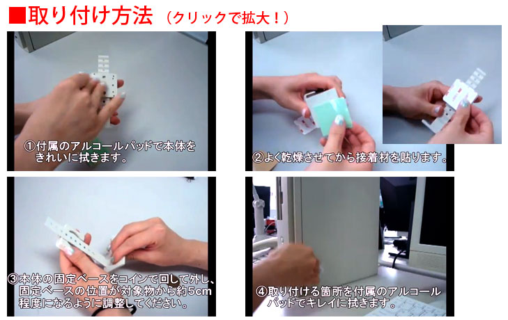 • 強力接着パッドを使用し、IT機器や書棚・機材等を動かさずに固定することが可能です。