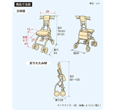 折りたたみ時 幅40×奥行28×高さ88〜100cm
