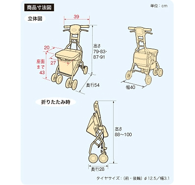 折りたたみ時 幅40×奥行28×高さ88〜100cm