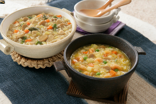 • バターをベースに海老やマッシュルームがふんだんに入った本格雑炊です。