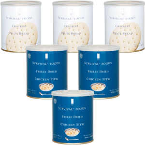 商品名 サバイバルフーズ チキンシチューファミリーセット 約60食分(クラッカー大缶×3・チキンシチュー大缶×3) 【製造から25年保存】