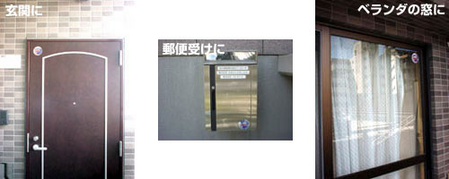 • また、複数のステッカーを使用することによって家全体があたかも警備状態になっているように見せると効果的です。