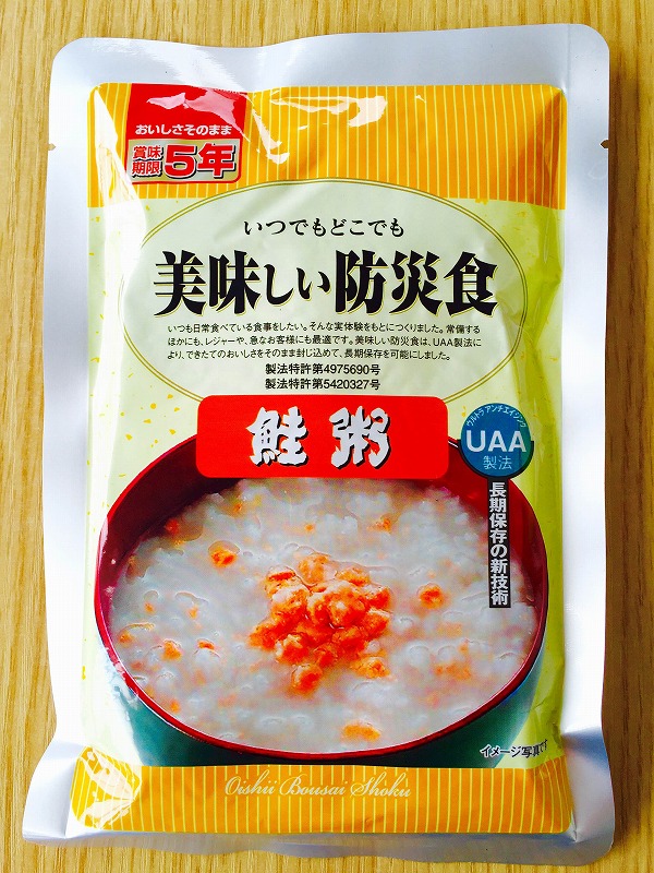 美味しい防災食シリーズより5年保存の鮭粥です。