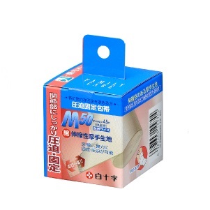 ここは空白です 伸縮性のある厚手生地で、患部の固定・圧迫に最適な弾力包帯です。