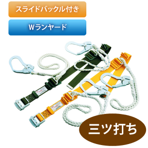 フック掛け時の墜落を防止する為に、Wロープ付きにした安全帯です。