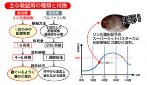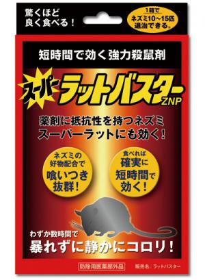 - 急性毒であるリン化亜鉛配合のスーパーラットバスターZNPは、薬剤に抵抗性を持つネズミ(スーパーラット)にも効きます。