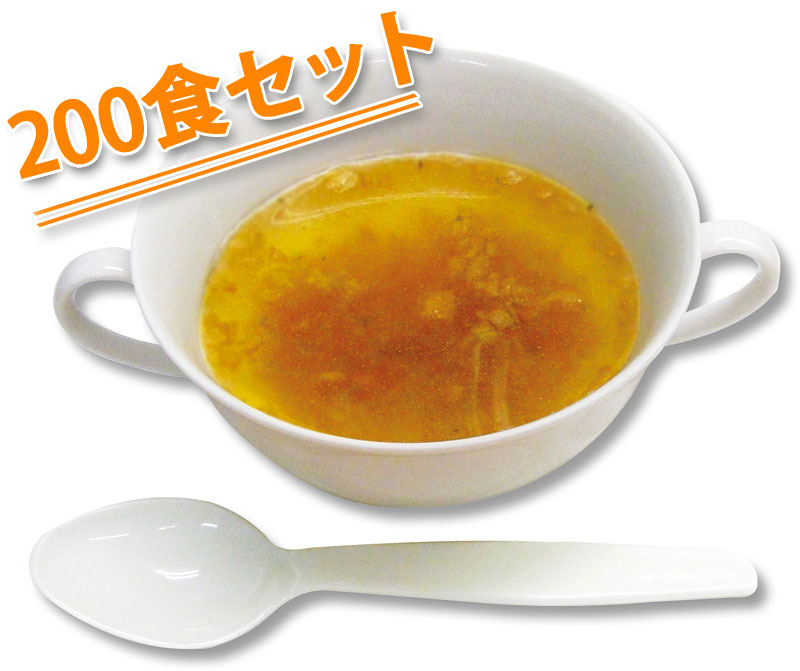 | 原材料名 | コンソメ粉末、でん粉、食塩、しょう油、オニオンパウダー、セロリ、ホワイトペッパー、 具(オニオンソテー)/調味料(アミノ酸等)、酸化防止剤(ビタミンE)、カラメル色素、香料 |