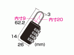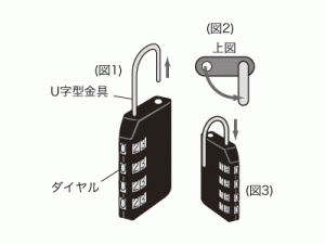 ※暗証番号を忘れてしまった場合は全ての番号試すか、金具を切断する以外開錠はできません。メモなど残すよう、お願いします。
