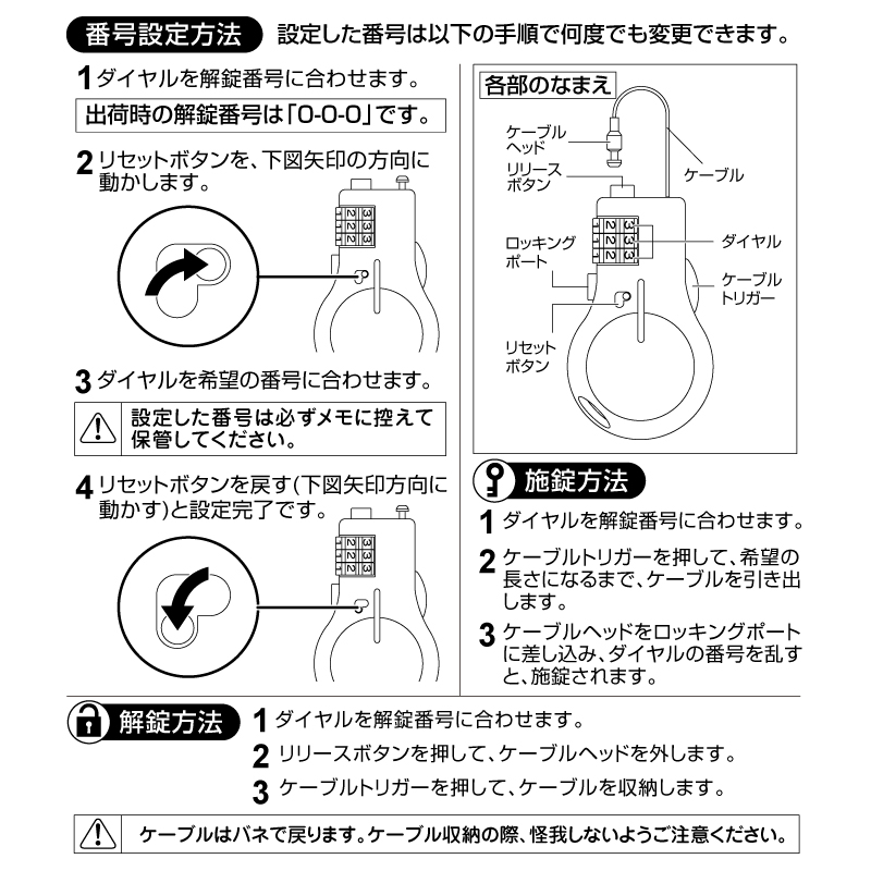 3ケタダイヤル(お好きな番号に設定できます。)
