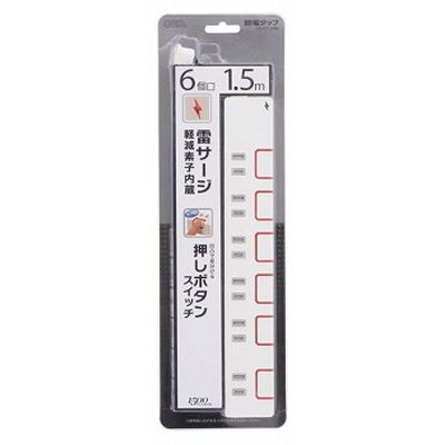 商品名 オーム電機 押しボタンスイッチ付き雷ガード節電タップ 6個口 1.5m