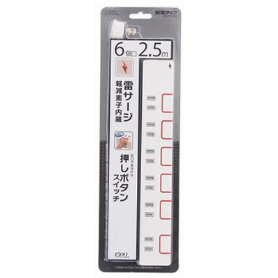 商品名 オーム電機 押しボタンスイッチ付き雷ガード節電タップ 6個口 2.5m