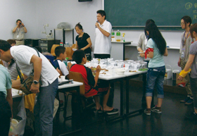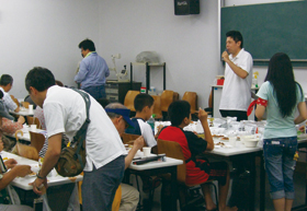 試食会では東日本大震災後の食糧事情を説明しました。