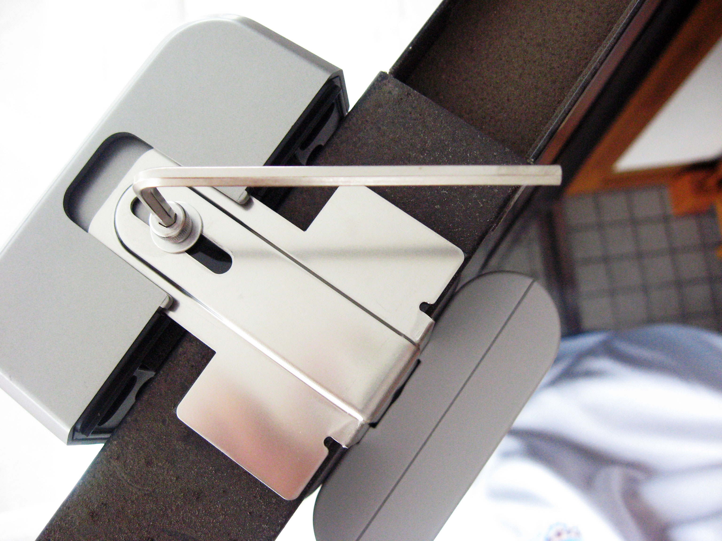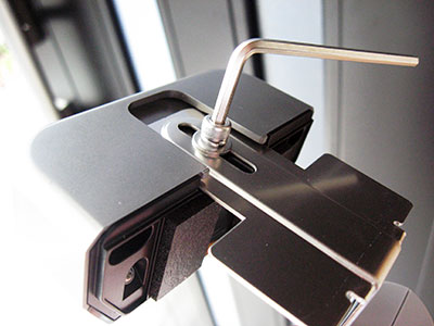 ↑ この反対側がカメラ 玄関ドアの厚みに合わせて、六角レンチで幅を調節。