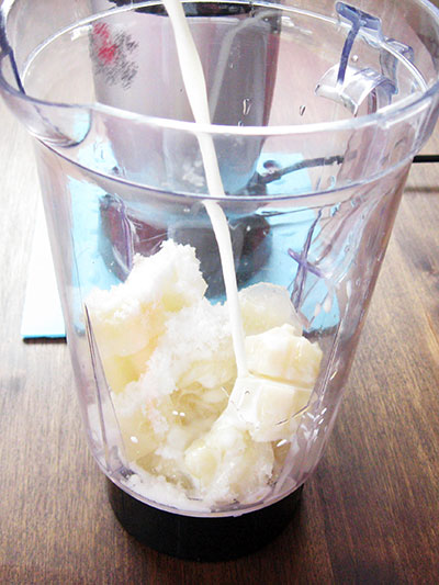 更に、白桃シャーベットに牛乳、砂糖を加えミキサーにかければ…