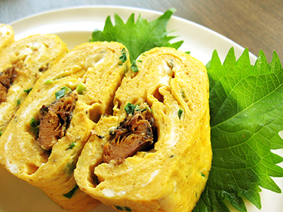 さんま蒲焼は、う巻き卵風にアレンジ。