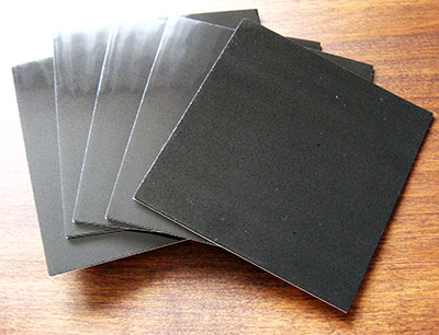 表面は光沢があって、厚さは2mm程度。横から見るとこんな感じ。