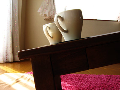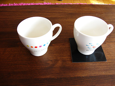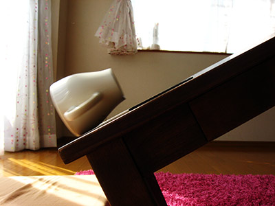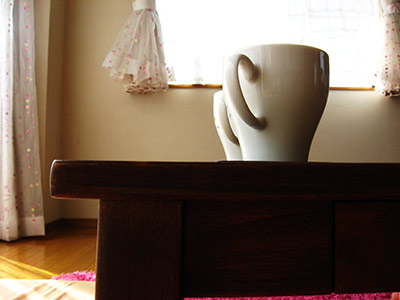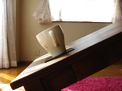 今回は、テーブルの上にコップを置いて、少しずつテーブルを傾けてみました。