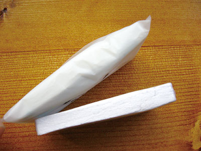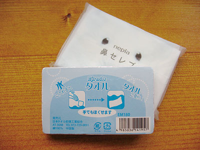 ポケットティッシュとほぼ同じ大きさの圧縮タオル。