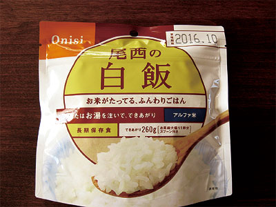 「越後製菓 備蓄用・保存用白飯」と「尾西食品 アルファ米白飯」