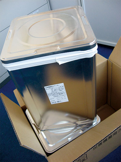 ダンボールの中には、一斗缶が2 つ。