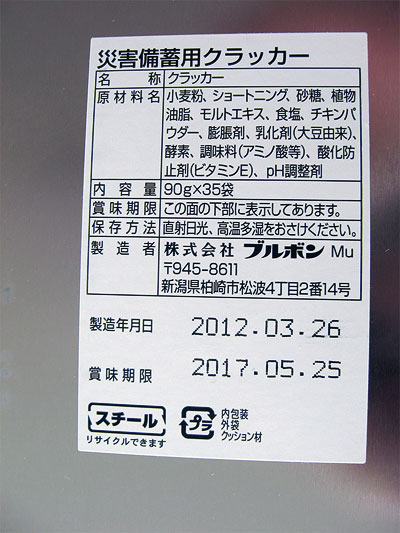 HOME > 防犯・防災グッズの体験レポート >「ブルボン 災害備蓄用クラッカー」 |