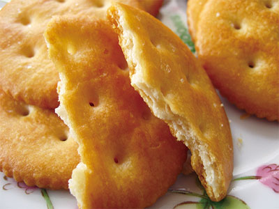災害用の食料には、このブルボンのクラッカーのように、開けて直ぐに食べることができ、