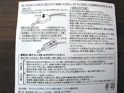電源:ボタン電池(CR2016)2個付(モニター)