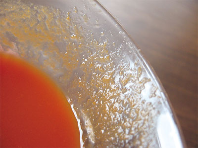 見た目ではトマトが勝っているけれど、色々な野菜の繊維が残っているのが見て取れます。
