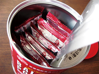 缶の中には、ココア味のバランスパワーが8袋。
