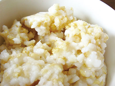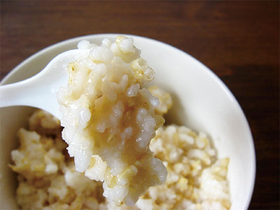 普通のお粥に比べて水分が少なく、ねっとりしている。