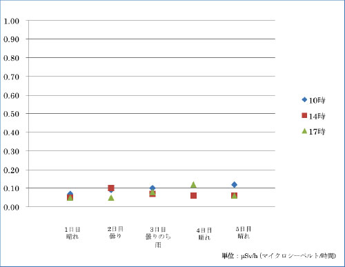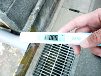 屋外は、雨の後の水溜りやホコリなどが溜まりやすい雨どいの下での測定です。