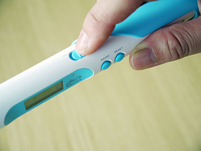 4.35秒後から予測数値が表示され、ランプが消灯すると確定値が表示される。 (予測測定は最長約2分、以降は10秒毎に表示を更新します)