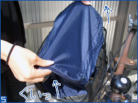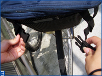 そして、バッグに出ているベルトを、前カゴにまわすようにしてとめます。