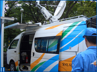 この中継車は被災地から高画質なデジタル映像を送信することができます。